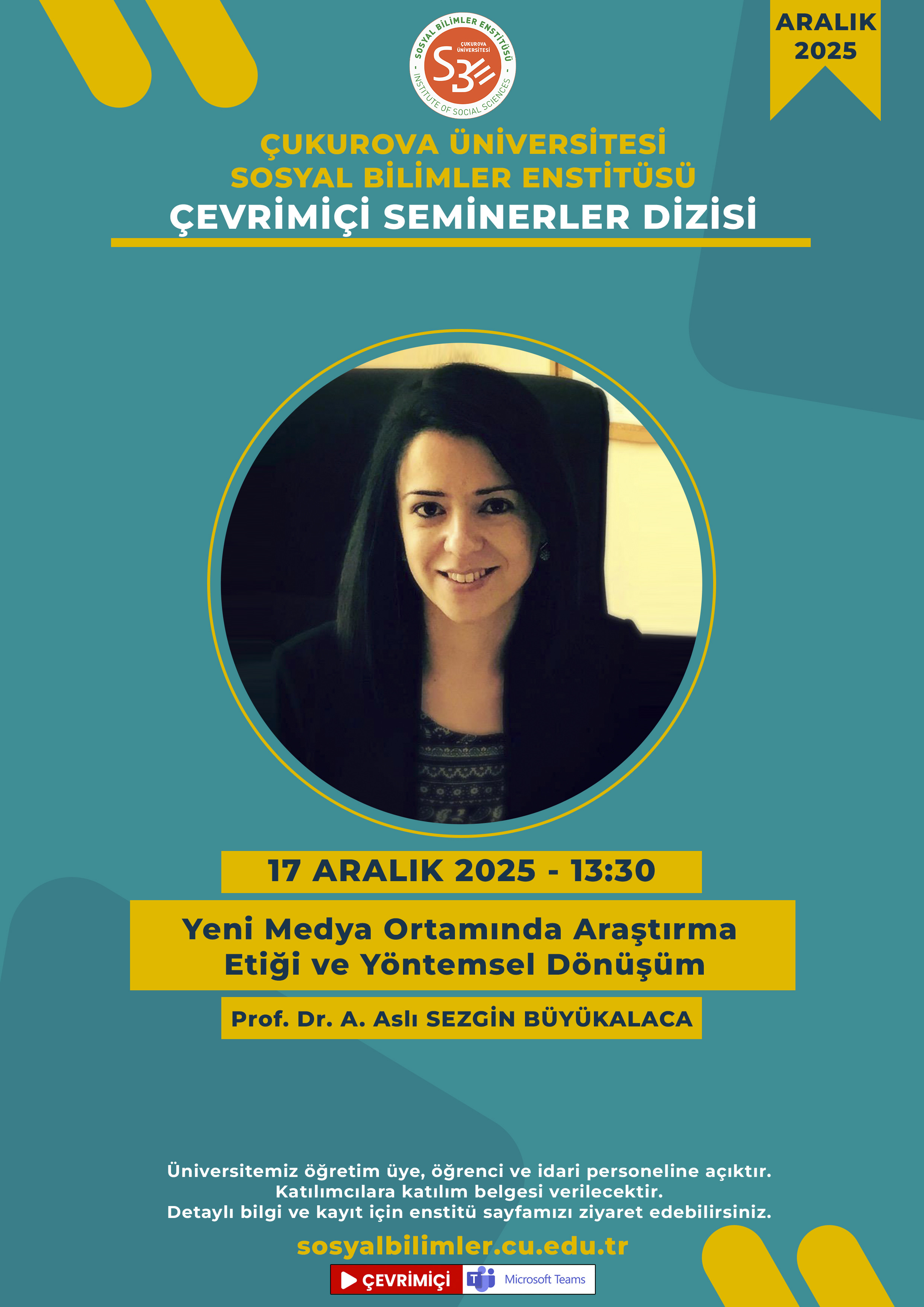 Üniversitemiz öğretim üye, öğrenci ve idari personeline açıktır. Katılımcılara katılım belgesi verilecektir. Katılım için kayıt olmak gereklidir. Kayıt için aşağıdaki linke tıklayıp Üniversitemiz Teams hesabınızla oturum açınız. Kaydolduktan sonra seminer gün ve saatinde aynı linke tıklayarak Teams üzerinden toplantıya katılabilirsiniz: