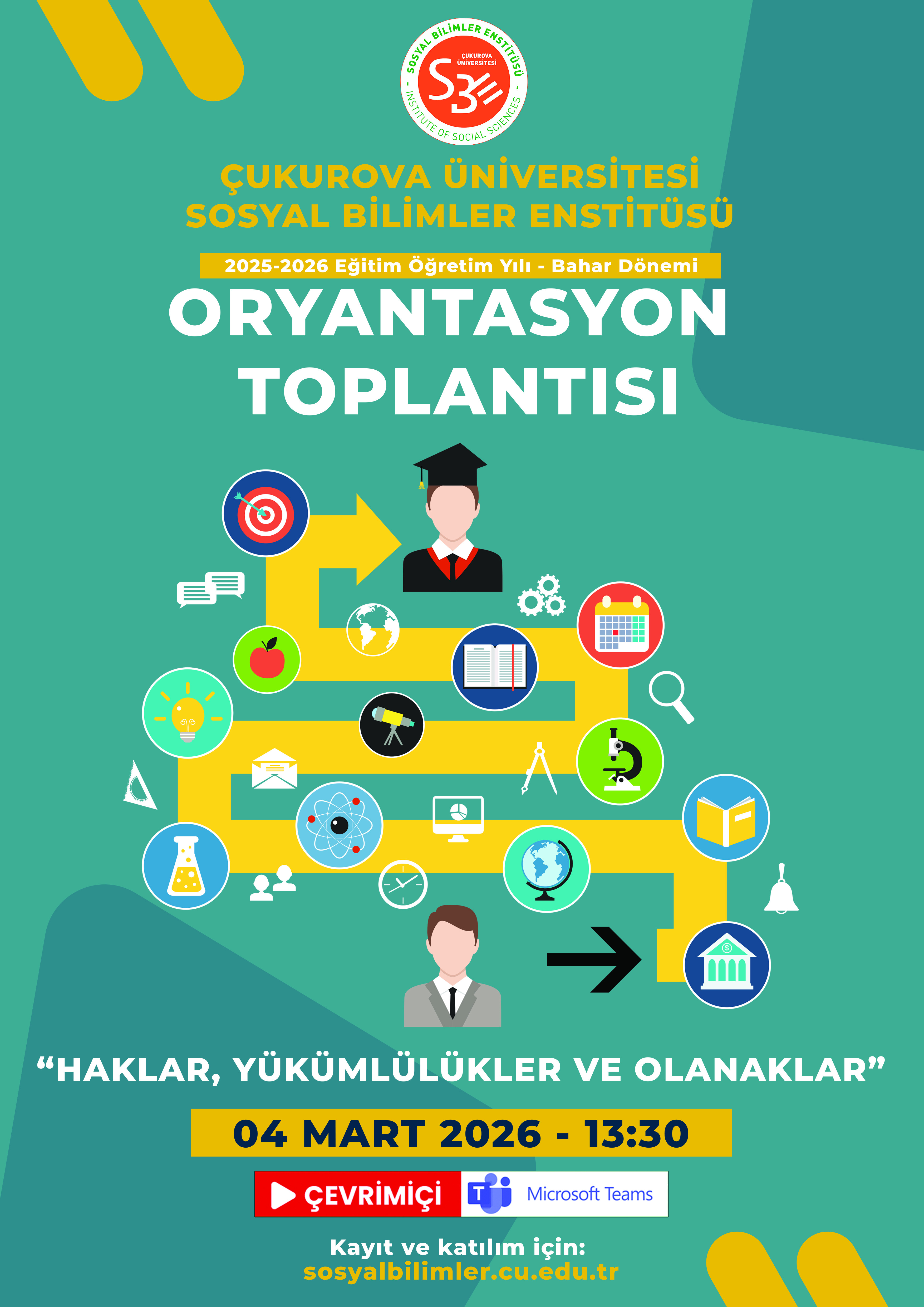 2025-2026 Bahar Yarıyılında Enstitümüze kaydolan öğrencilere 4 Mart 2026 Çarşamba günü Saat 13:30’da çevrimiçi oryantasyon toplantısı düzenlenecektir.